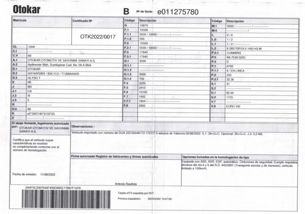 Fabricante/Carrocería: OTOKAR