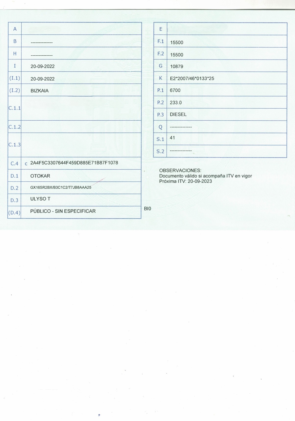 Fecha 1ª Matrícula: 20/09/2022