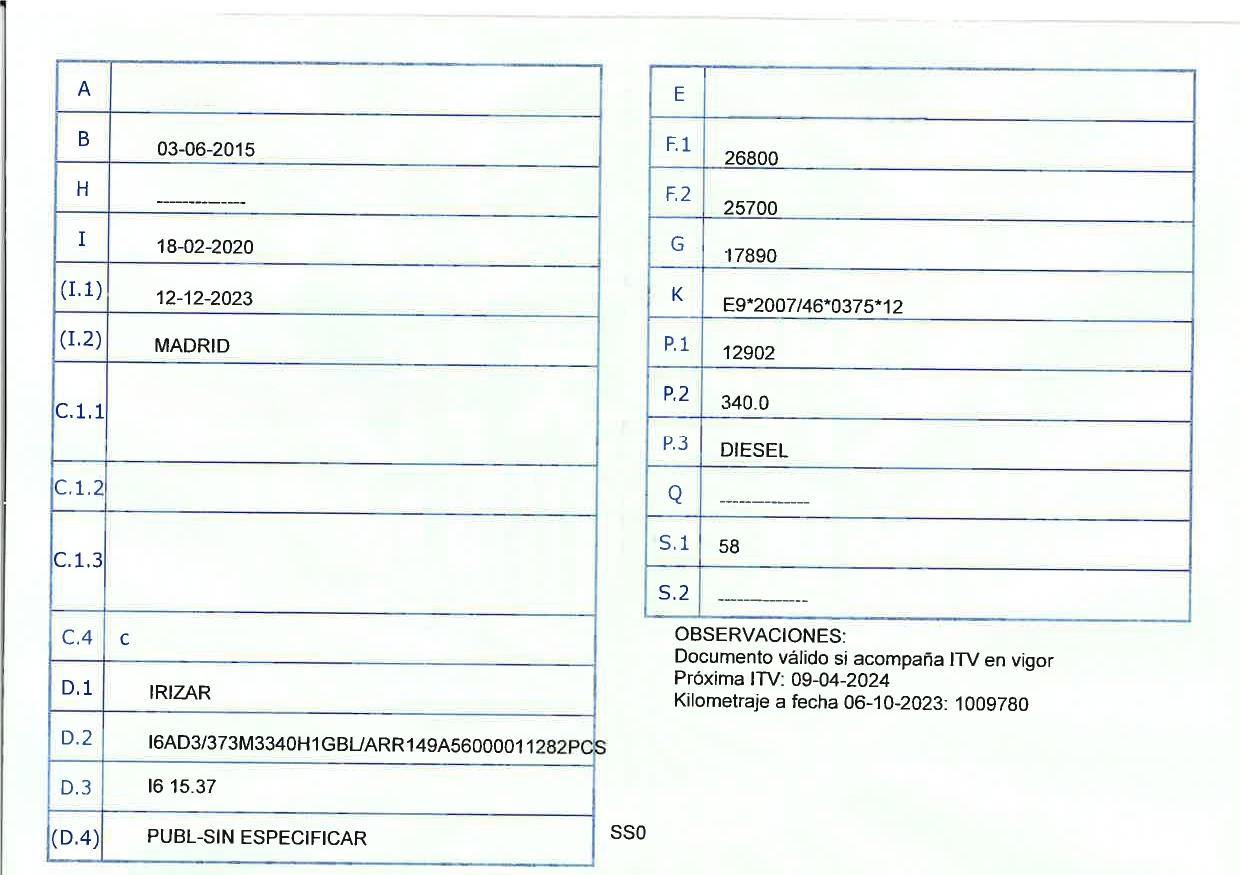 Kilometraje: 1.100.000 km (hechos en carretera) – vehículo largo recorrido